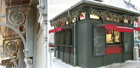 Seit Oktober 2010 ist die leipziger Kneipenmeile Karli um eine Attraktion reicher. Der neue Kultgrill Burgermeister befindet sich im ältesten noch erhaltenen Toilettenhäuschen von 1887, direkt am Südplatz. Das denkmalgeschützte Jugendstilgebäude wurde von uns gemeinsam mit den beiden Inhabern mit viel Liebe zum Detail restauriert. In Anlehnung an die Bauaktenzeichnung von 1887 entstand in enger Zusammarbeit mit der Denkmalpflege der Kultgrill. Die historischen Gußstützen und das Dach blieben erhalten, alles andere wurde entfert. Die Fassade und die Fensterbänder bekamen ihre historischen Proportionen zurück. Die handgeschmiedeten Stahlfassadenelemente, die Rosetten und die Sockelprofile stellte eine versierte Stahlbaufirma nach alten Fotos und Zeichnungen in Handarbeit wieder her. Die Metallfassade kann an 4 Stellen durch einen raffinerten Klappmechanismus geöffnet werden, die Bedientische lassen sich nach innen herunterklappen und die roten Markisen verschwinden, wenn der Grill schließt, damit Nichts die historische Fassade stört. Auch im Innenraum musste die hochwertige Küche auf engstem Raum Platz finden. Vor dem Grill entstand ein gestalteter Platz mit von uns speziell entwurfenen Stehtischen und Anlehnern.